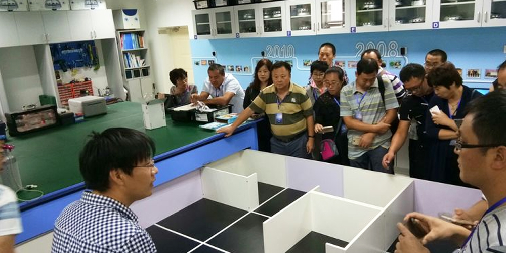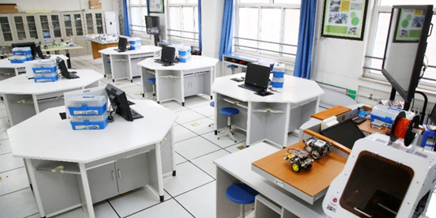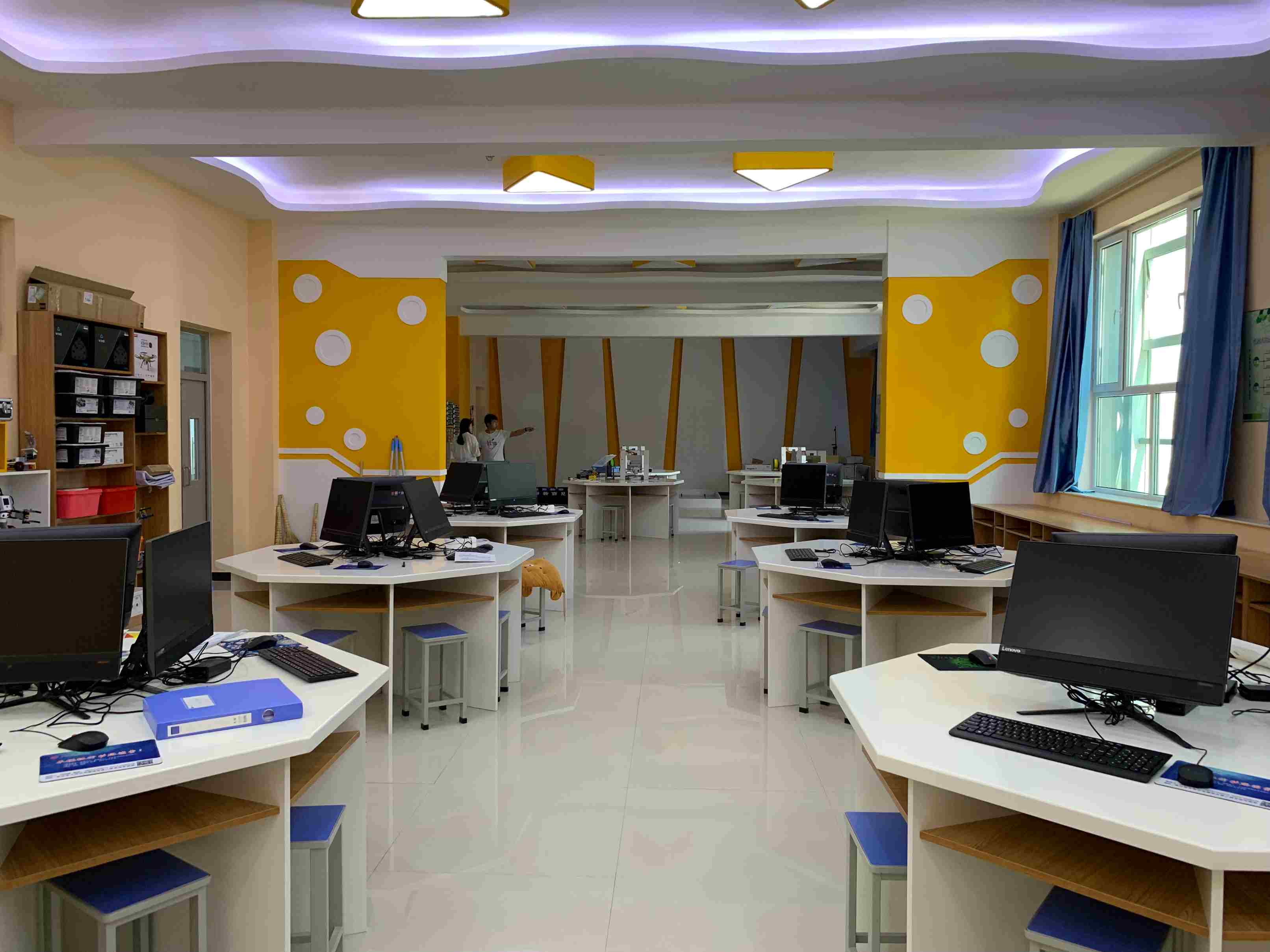 阿斑兔將機器人、創(chuàng)客、3D打印、航模等融為一體,研發(fā)、設(shè)計具有情景體驗、創(chuàng)意生成、原型制作、展示交流等多功能為一體的機器人教育教學場所,即創(chuàng)新教育實驗室,針對不同年齡段學生的特點、學校學情等,為其提供足夠的空間、設(shè)備和完善的課程體系。